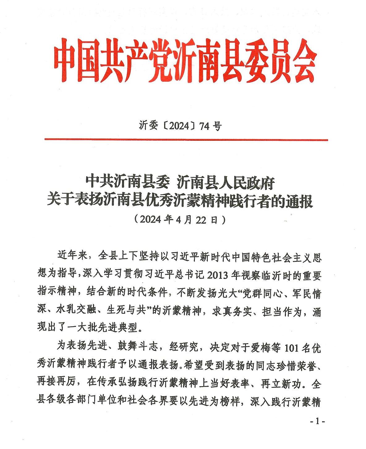 喜報!熱烈祝賀慶祝廖家友同志榮獲沂南縣沂蒙精神踐行者活動-科技工作者類“沂蒙精神踐行者”