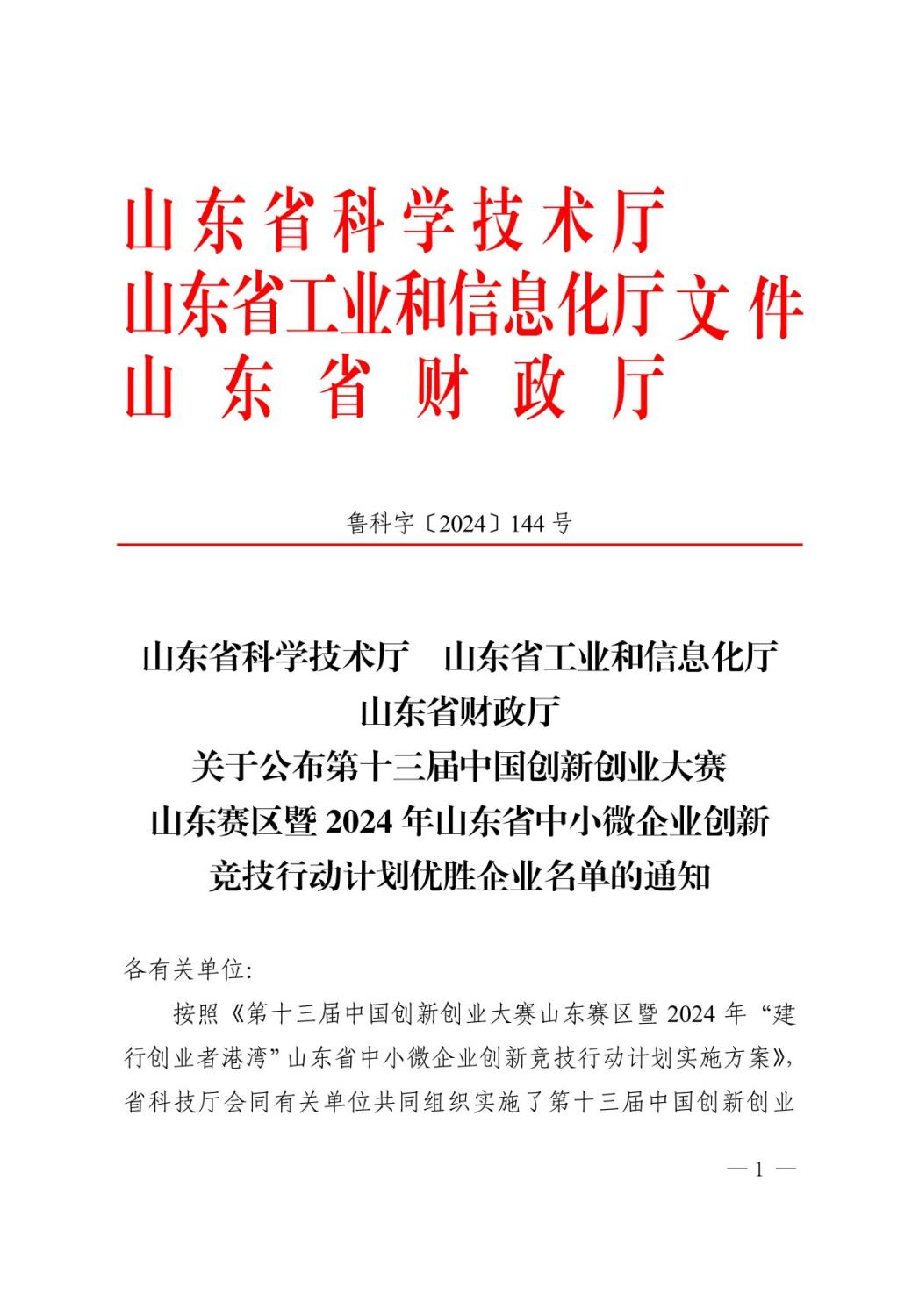 山東賽區(qū)暨 2024年山東省中小微企業(yè)創(chuàng)新競(jìng)技行動(dòng)計(jì)劃優(yōu)勝企業(yè)名單